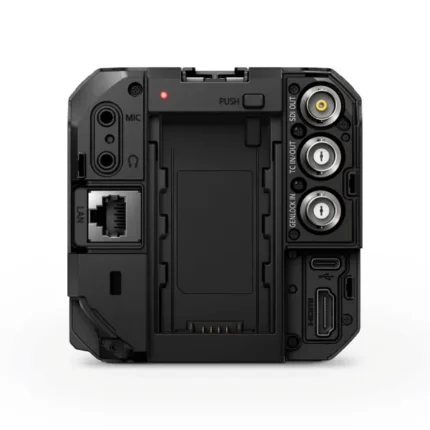 Nombre total d’entrées vidéo : Aucune Nombre total de sorties vidéo 1 x 12G-SDI jusqu’à 2160p60 1 x Viseur USB-C avec alimentation, données, vidéo et connecteur de verrouillage. Entrées audio analogiques 1 x entrée audio analogique mini XLR, commutable entre micro avec prise en charge de l’alimentation fantôme et niveau ligne (jusqu’à +14dBu). 1 entrée stéréo 3,5 mm. Sorties audio analogiques : 1 prise casque de 3,5 mm Entrées de référence : Tri-Sync/Black Burst et Timecode Interface pour l’ordinateur USB Type-C pour l’enregistrement sur disque externe, le contrôle de la caméra PTP et les mises à jour logicielles. Ethernet : 1 x 1Gb/s connecteur RJ-45 supportant 10/100/1000 BASE-T.Audio