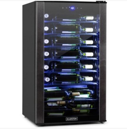 La cave à vin Klarstein Shiraz 18 Uno allie élégance et fonctionnalité, offrant un espace de conservation optimal pour jusqu'à 18 bouteilles. Avec sa porte en verre de sécurité et son cadre en acier inoxydable brossé, elle permet de présenter vos bouteilles tout en préservant leurs arômes grâce à un contrôle précis de la température.