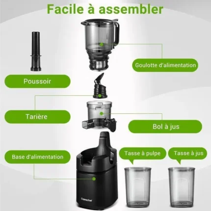 AMZCHEF Extracteur de jus Sans Préparation, Extracteur Jus Lent 135mm 1,8 L, Slow Juicer 250W sans BPA, Noir