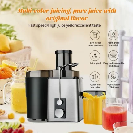Extracteur de Jus de Fruits et Légumes – Grand Bouche 80mm Sans BPA – 96,5 % de Rendement en Jus – Gris