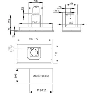 - Débit d'air maxi : 603 - idéal pour une cuisine de 25m².