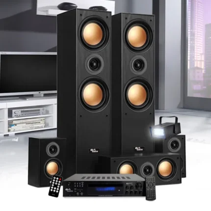 Pack Home-Cinéma – Evidence Acoustics EA950-PG – 5 enceintes 850W – Ampli 5.1 USB BT FM – 4 x75W, 3 x20W – Mini Strobe en Cadeau