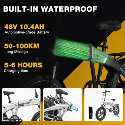 HITWAY Vélo électrique VAE BK36 Pliable 250W – Batterie Amovible 48V10,4Ah – 7 Vitesses – Noir