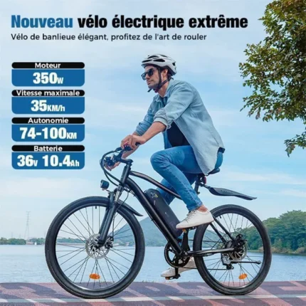 Vélo Électrique VTT EB3-26 Pouces-250W-36V10.4Ah-Vitesse maximale 32 km/h-Autonomie 100Km-5 Vitesses-Batterie Amovible