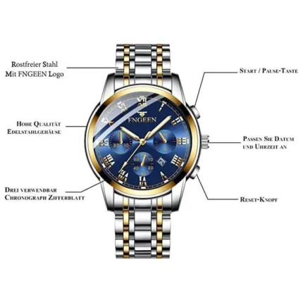 Montre Bracelet pour Hommes Daffaires en Acier Inoxydable Etanche Aiguilles Lumineuses Date Automatique Chronographe
