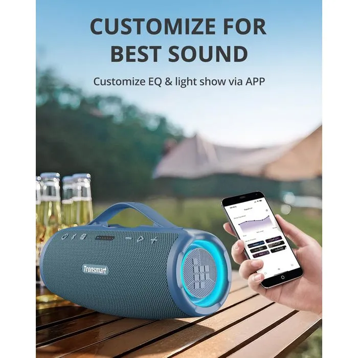 Basses puissantes, aigus nets et égaliseur personnalisable : ressentez la puissance des basses de 50 W avec un caisson de basses intégré. La technologie avancée SoundPulse de Tronsmart offre des basses profondes et des aigus nets, ce qui en fait l’un des meilleurs haut-parleurs Bluetooth portables pour une utilisation en extérieur. Avec les paramètres EQ de l’application Tronsmart vous pouvez adapter le son de ce haut-parleur Bluetooth extérieur à n’importe quelle chanson ou situation.