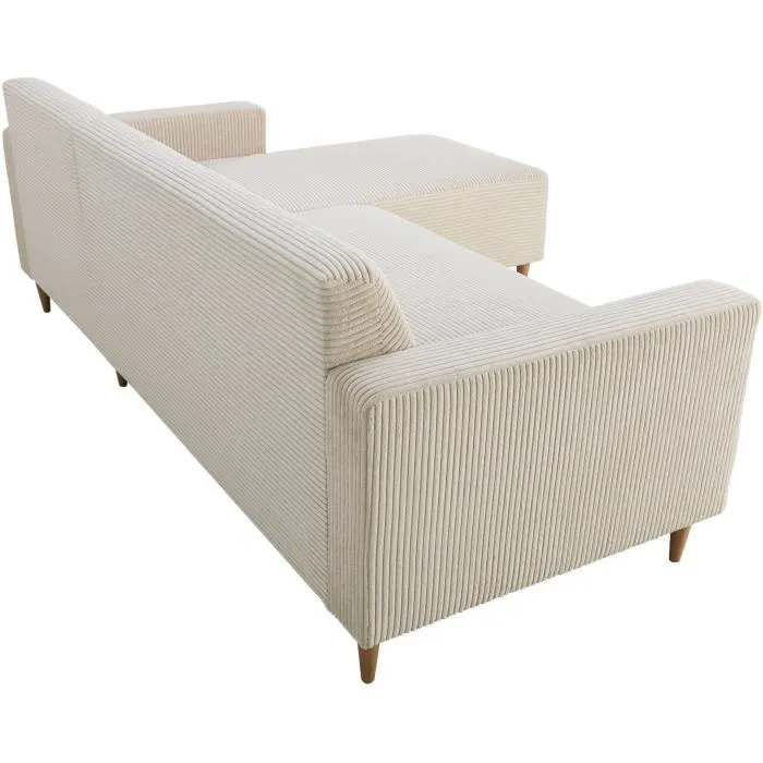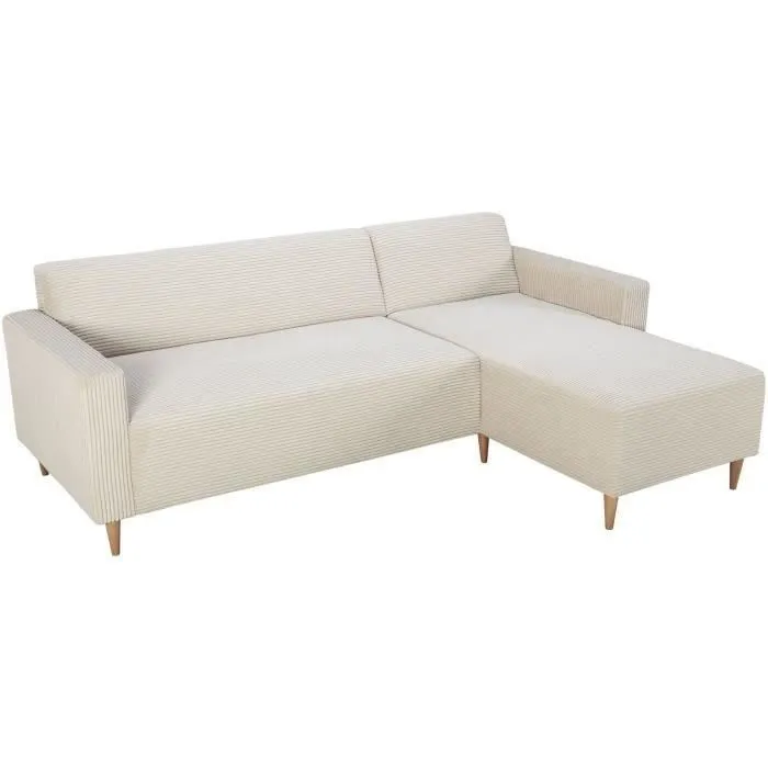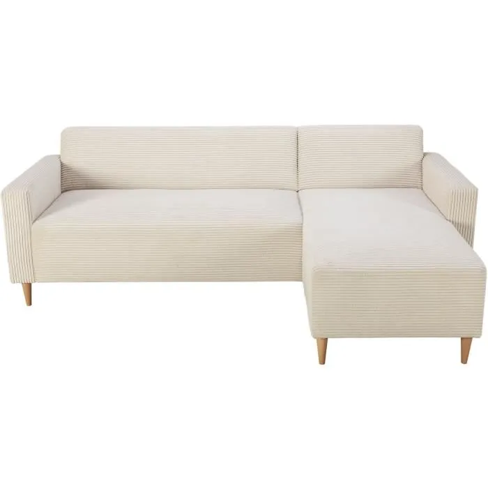 Canapé d’angle réversible – 3 places – BOB – Velours cotelé – Ecru – 197 x 138 x 65 cm