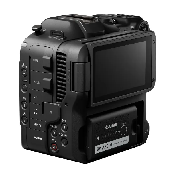 Le modèle hérite de nombreuses fonctionnalités professionnelles des caméras Cinema EOS actuelles, notamment 13 boutons personnalisables par l’utilisateur, deux connecteurs Mini XLR, des molettes de contrôle audio dédiées, ainsi qu’une entrée et une sortie Timecode. Le port USB-C prend en charge les adaptateurs Wi-Fi et Ethernet tiers.