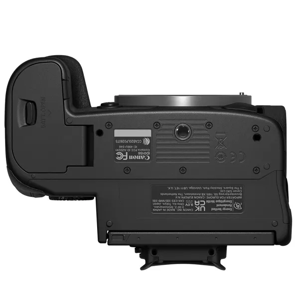 La connectivité de l’EOS R5 C comprend des connecteurs dédiés pour l’entrée ou la sortie Timecode, l’entrée microphone 3,5 mm, une sortie pour écouteurs, une sortie micro-HDMI, la synchronisation du flash, une télécommande de type N3 et un terminal USB-C pour l’alimentation, le chargement et les communications. Un protecteur de câble est inclus dans la boîte pour sécuriser les connexions USB-C et micro-HDMI pendant la prise de vue.