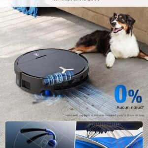 • 【Technologie ZeroTangle 3.0 et TruEdge 2.0】La technologie ZeroTangle 3.0 combine une brosse latérale anti-nœuds ARClean avec une brosse principale dirigée par cyclone pour éviter que les poils/cheveux ne s’emmêlent, l’idéal pour les foyers avec des animaux de compagnie ou des personnes aux cheveux longs. La technologie TruEdge 2.0 avec capteur de bords 3D permet l’extension dynamique des patins à rouleau et des brosses latérales pour nettoyer à moins de 1 mm des bords et des coins, même autour de plinthes ou de pieds de meuble irréguliers. Il soulève les patins quand il passe sur les tapis et moquettes pour éviter de les mouiller et augmente l’aspiration pour les tapis épais.