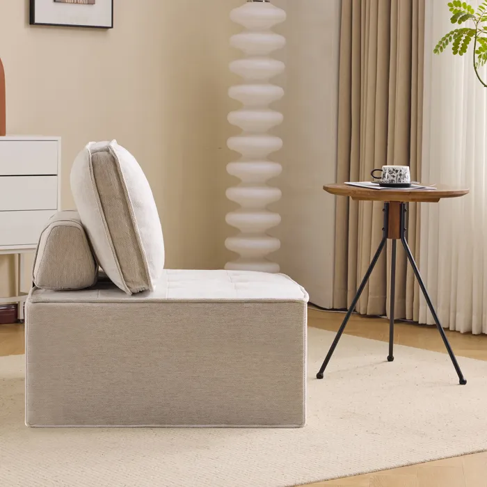 Nom du produit Fauteuil Fixe Salon – 1 Place Confortable, Dossier Modulable, Tissu Lin Beige, Design Moderne