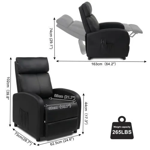 Fauteuil relaxation Massage inclinable, avec Repose-Pied Ajustable,97 x 64 x 105 cm,noir