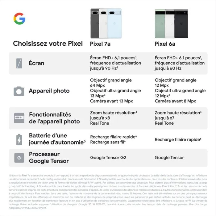 Le principal du Pixel 7a réside dans les performances exceptionnelles de son appareil photo. Grâce à la puce Tensor G2, les technologies de photographie computationnelle telles que HDR+, Night Sight et HDR en temps réel excellent en matière de reproduction des couleurs, de plage dynamique et de netteté en basse lumière. Sa qualité d’image rivalise avec celle de nombreux smartphones haut de gamme.