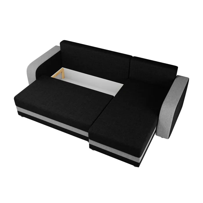 Harvey – Canapé d’angle réversible 4 places convertible avec coffre en tissu bicolore – Noir / Gris