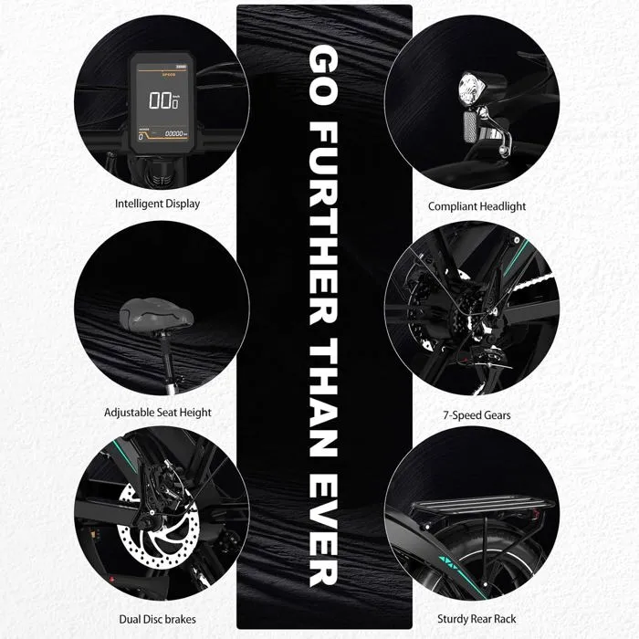 HITWAY Vélo électrique VAE BK36 Pliable 250W – Batterie Amovible 48V10,4Ah – 7 Vitesses – Noir