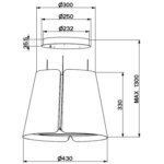 - Largeur : 130 cm, pour une zone de cuisson allant jusqu’à 120 cm de largueur.