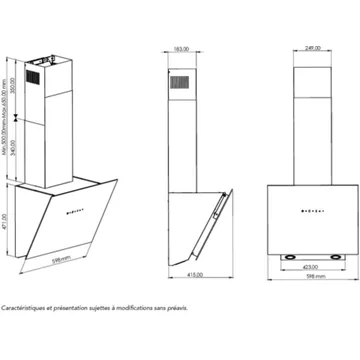 - Débit d'air maxi : 603 - idéal pour une cuisine de 25m².