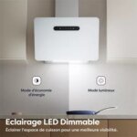 - Autre compatibilité de type de hotte : décorative murale inclinée, combine style et fonctionnalité. Sa conception permet de mieux gérer l’espace au-dessus de la zone de cuisson. Elle évite de devenir un obstacle dans l’espace de cuisson et n’obstrue pas la vue, rendant plus facile la préparation des plats.