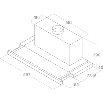 - Largeur : 52 cm, pour une zone de cuisson allant jusqu'à 60 cm de largueur.