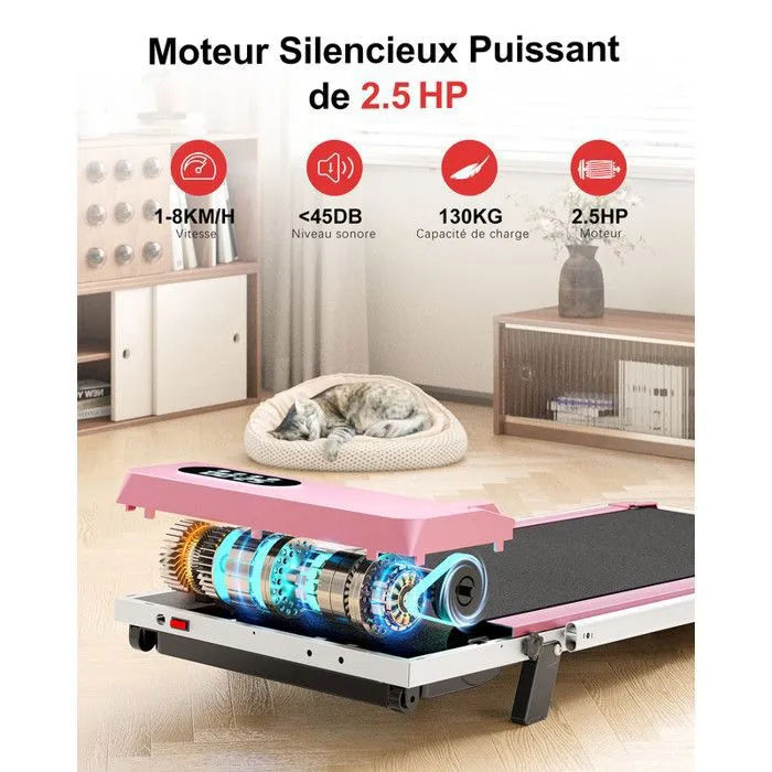 Inclinaison 0-7° – Tapis de course Pliant BIGZZIA, tapis de march silencieux 2.5 HP – 1-8 km/h,Charge max 130kg, Walking Pad Rose