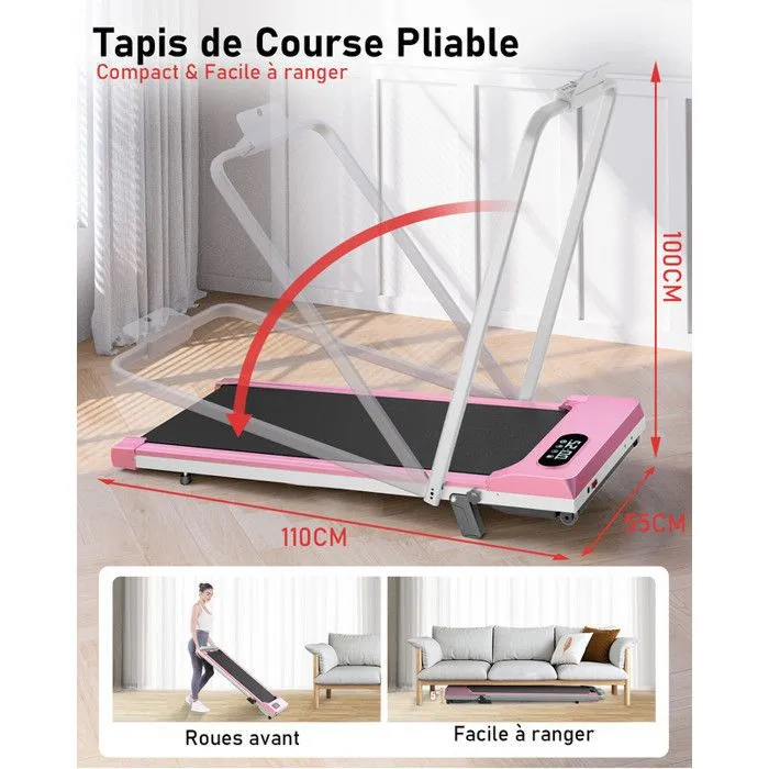 Nom du produit Inclinaison 0-7° – Tapis de course Pliant BIGZZIA, tapis de march silencieux 2.5 HP – 1-8 km/h,Charge max 130kg, Walking Pad Rose