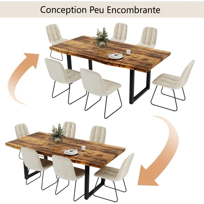 Nom du produit JIEXI Table à manger rustique, plateau aspect bois avec bord ondulé (Vintage Woodgrain + 6 chaises de table à manger beiges)