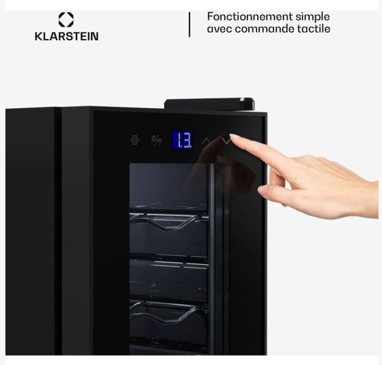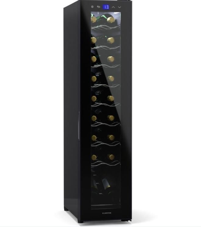 La cave à vin Klarstein Shiraz 18 Slim Uno est conçue pour conserver vos vins de manière optimale, offrant un espace pour jusqu’à 18 bouteilles. Avec sa capacité de 50 litres, elle permet de garder vos vins à la température idéale, que ce soit pour un vin blanc frais ou un vin rouge bien développé. Son design compact, avec une largeur inférieure à 50 cm, la rend facile à intégrer dans n’importe quel espace de votre maison.