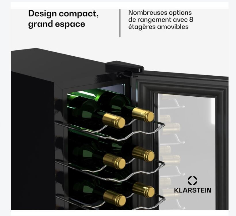- Capacité : 50 litres (jusqu’à 18 bouteilles)