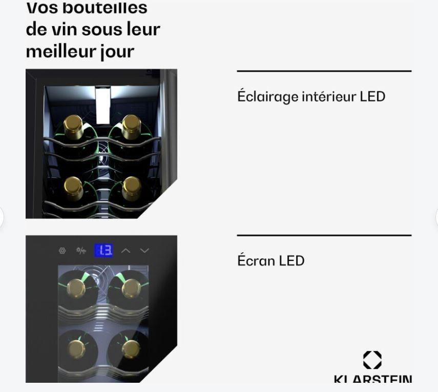 - Éclairage intérieur LED pour une visibilité optimale des bouteilles
