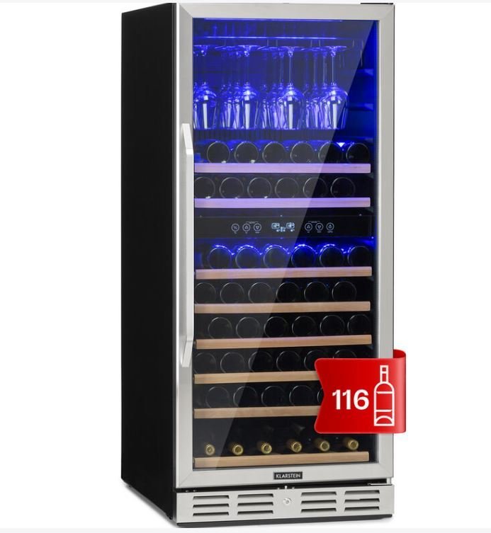 Klarstein Cave a Vin Encastrable, Caves à Vin de Conservation de 306L, Porte en Verre, Cave a Vins à Double Zone, Bar Int/Ext, Frigo Vin Bizone, Cave a Vin de Vieillissement, Cave à Vin 116 Bouteilles