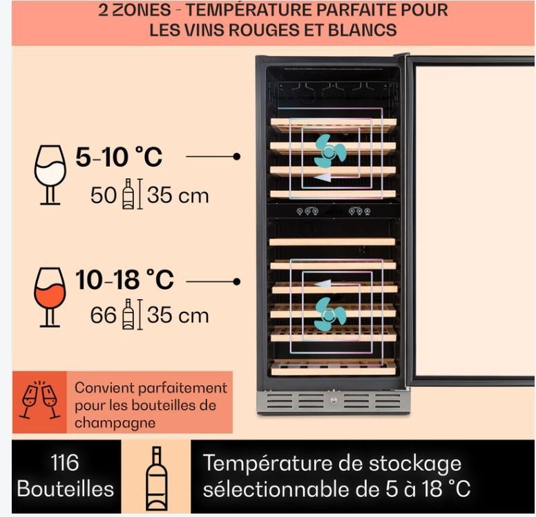 - Capacité : 116 bouteilles (310 litres)
