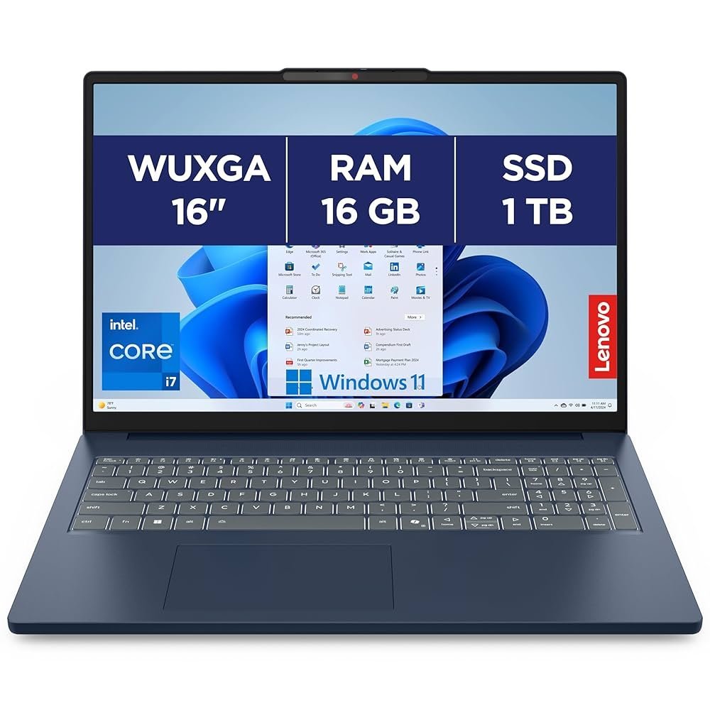 Lenovo IdeaPad Slim 3 16IRH10 – Ordinateur Portable 16 » WUXGA (Intel Core i7-13620H, RAM 16Go, SSD 1To, Intel UHD Graphics, Windows 11 Home) Clavier AZERTY Français – Bleu