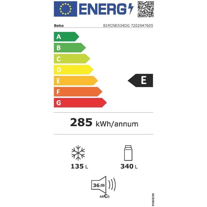 Nom du produit Réfrigérateur combiné – BEKO série b100 – B1RCNE534DG – 2 portes – Distributeur d’eau – 475 L – 70 x 74,5 x 187 cm – Gris Manhattan
