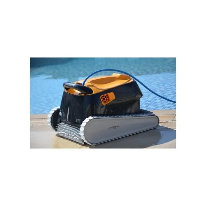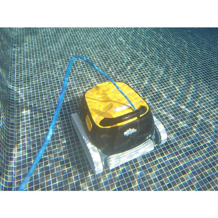 Dolphin E30 Le robot Dolphin E30 offre un grand confort d?utilisation grâce à son poids ultra-léger et l?évacuation rapide de l’eau. Il nettoie efficacement le fond, les parois et la ligne d’eau, pour des résultats de nettoyage garantissant une eau cristalline. Confiez au Dolphin E30 le nettoyage de votre piscine en toute sérénité :