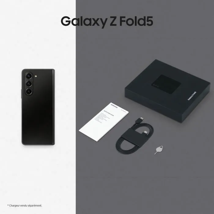 Livré avec Galaxy Z Fold5 – Câble USB-C vers USB-C – Outil d’éjection de la carte SIM – Guide de démarrage rapide