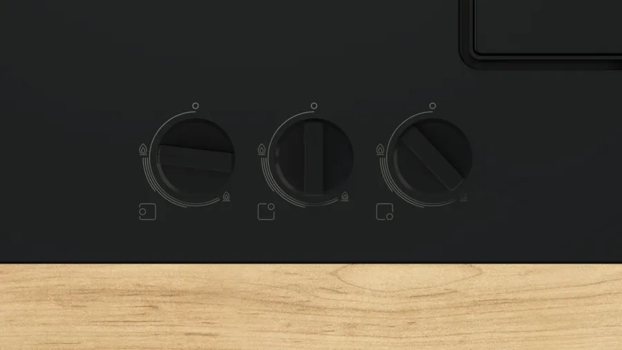 Table gaz 60 cm Verre trempé, Noir PNC6B6K30