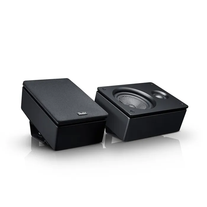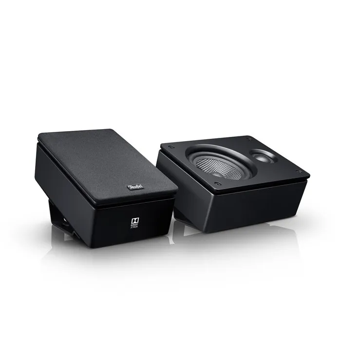 Disposition horizontale ou verticale, support de fixation murale amovible intégré Possibilité de disposition sur enceintes colonnes Laque noir mat discrète et de haute qualité Compatible avec Dolby Atmos, DTS :X et Auro 3D Content Système à deux voies à rayonnement particulier et graves de grande excursion pour des volumes sonores sans distorsion Composants : 2x haut-parleurs Reflekt, 2x supports de fixation murale, 2x façades en tissu