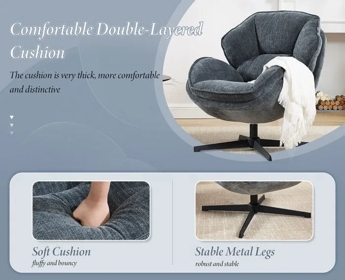 Wahson Fauteuil de Salon Pivotant Chaise Salon, Fauteuil Crapaud avec Cadre en Métal, Fauteuil Relax Pour Chambre, Chenille, Bleu