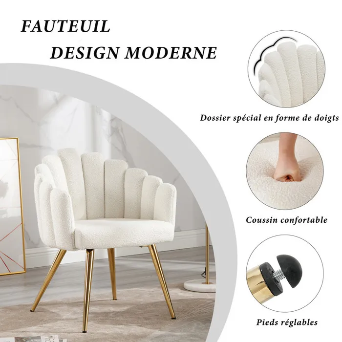 Pieds en métal doré: Le fauteuil salon design est équipée de 4 pieds stables en métal avec une surface plaquée or, qui non seulement a un aspect très luxueux, mais qui n’est pas facile à rouiller et à déformer, ce qui est très rentable.